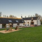 The farmhouse sleeps up to 14 across elegant bedrooms with plush beds and dreamy décor. The master suite comes with a king bed, en-suite jacuzzi bath and its own balcony – perfect for a peaceful morning coffee or golden hour snaps. Bathrooms are modern, spacious and ideal for getting glam before your big night.