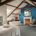 Bedroom 4 – Super king-size zip-link bed, single bed, space for up to two Z-beds, open-plan en-suite bathroom with a freestanding bath, shower, two basins, and WC.