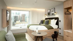 A mix of studio and one-bedroom apartments are available, giving you flexibility depending on your group size. Each space features chic interiors, generous natural light, and thoughtfully designed layouts. Open-plan living areas provide a relaxed spot for socialising, complete with comfortable seating and large flat-screen TVs. Fully equipped kitchens make group dining easy and stress-free.