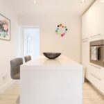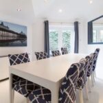 Whether you’re making breakfast, baking something sweet, or pouring a glass of fizz, the modern kitchen is a joy to be in – complete with a social island, top appliances, and doors that open out to the sunny garden patio. The dining table comfortably seats 8–10, perfect for long, relaxed meals together.