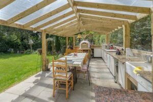 Step outside to discover the extensively landscaped garden with the cutest outdoor kitchen and dining area, complete with a pizza oven… perfect for al-fresco entertaining! Fancy something special? Mojito can arrange a private pizza chef, a tapas feast, a gin tasting session, cocktail making or even a themed night right from your exclusive outdoor entertaining space.