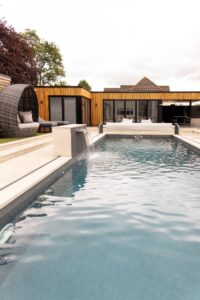 Outdoor amenities are a highlight, with a heated swimming pool, infra-red sauna, and a stylish fire pit ideal for evening drinks or sunset gatherings. The property’s layout and luxurious pool villa make it perfect for private chef experiences, cocktail evenings, or relaxed outdoor dining.