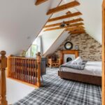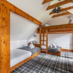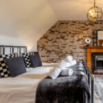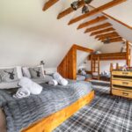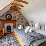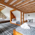 The lodge sleeps up to fifteen guests across four beautifully designed bedrooms. The main bedroom offers a calm en-suite space, while the other rooms each bring their own style and character. A family room includes both a double bed and single beds, making it ideal for groups with children. Each room focuses on comfort, privacy, and restful sleep after a day of activities.
