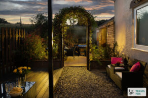 The property itself is located less than 70 metres from the sea. Inside you will find a comfortable lounge area with a flatscreen TV & log burner, as well as a modern and bright kitchen with dining for all guests. Make the most of that gorgeous dining space and entertain your guests with a fabulous cocktail making master class, or how about a private chef to whip up a feast – whatever the option this really is the perfect spot for hosting. There is also an indoor hot tub which looks out onto the patio dining area, with comfortable seating as well as a BBQ for use during your stay. Additionally there is parking at the property as well as WiFi throughout.