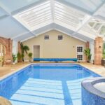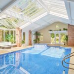 Heated 10-metre indoor swimming pool with light-filled vaulted glass roof, great for group swims, races and poolside chill vibes 🏊♂️
