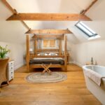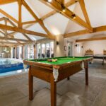 The barn features an exclusive leisure complex with a private indoor swimming pool, sauna, games room and outdoor hot tub. The complex connects to the main building, so you can enjoy a swim without stepping outside. It’s separate from the main living area too, giving your group the choice between fun and relaxation. While some enjoy competitive games, others can settle down with a movie, a glass of prosecco, and some popcorn.