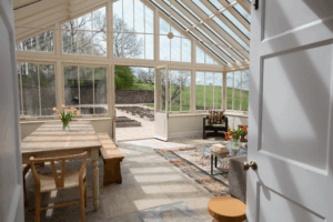 One of the standout features is the peaceful garden. It’s filled with raised herb beds and medicinal plants, creating a naturally calming atmosphere. The newly added conservatory offers the perfect spot for morning coffee or an afternoon glass of fizz. As the sun sets, gather around the fire pit and enjoy the warm glow under the stars.