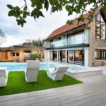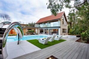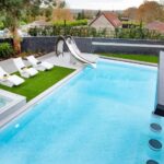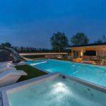 Outside, the party continues in true Mediterranean style. Take the stainless steel slide straight into the heated pool, swim up to the pool bar for a cocktail (private cocktail waiter anyone!?) and soak away your stresses in the sunken hot tub. Stretch out on heated marble loungers, challenge your friends to table tennis or host a sunset BBQ in the outdoor kitchen. And when it’s time to slow things down, unwind in your private spa building with a sauna and steam room…the perfect cure for post-party mornings.