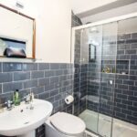 - Bedroom 2 – King-size zip-link bed (can be split into 2 single beds) with pull-out trundle bed (suitable for a small adult), and a small en-suite shared shower room (shower, basin, WC).