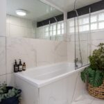 2 bathrooms with modern fixtures and facilities are shared across the group.