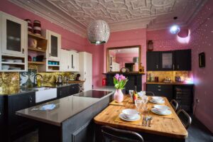 Welcome to this stunning Northumberland house, a beautifully restored period property in the historic market town of Haltwhistle — the very heart of Hadrian’s Wall Country. Perfect for large groups, family gatherings, or celebratory weekends, this luxury holiday home sleeps up to 14 guests across spacious, stylish interiors. Every corner of the house bursts with character — from its statement décor and high ceilings to its quirky disco kitchen and elegant entertaining spaces. Set within private grounds and fully dog-friendly, it’s an unforgettable base for exploring the Northumberland National Park, Hadrian’s Wall, and the rugged English countryside.