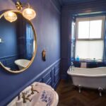 Four in total, including a freestanding roll-top bath, a luxury shower room with a feature peacock wall, and stylish ensuites in the annexe.